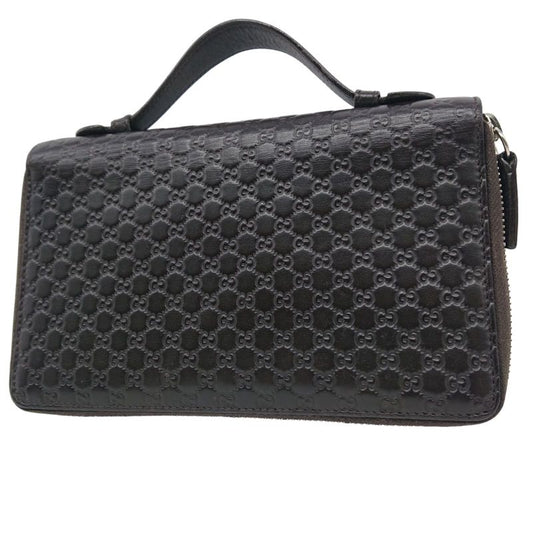Gucci Micro Shimmer Clutch Bag Organizer Long Wallet Leather Dark Brown