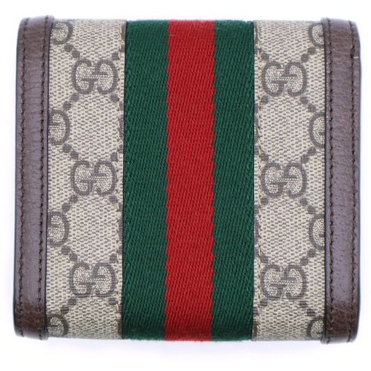 Gucci Ophidia GG Supreme Logo Plate Web Sherry Line Leather Canvas Compact