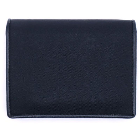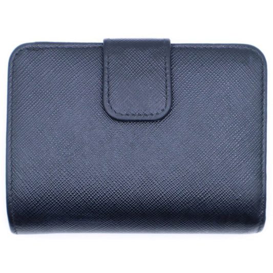 Prada Saffiano Triangle Logo Fold Wallet Compact Wallet Card Case Black Leather