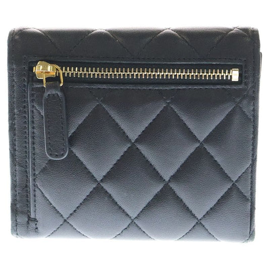 Chanel Matelasse Fold Wallet Black Lambskin Compact Wallet Gold Hardware