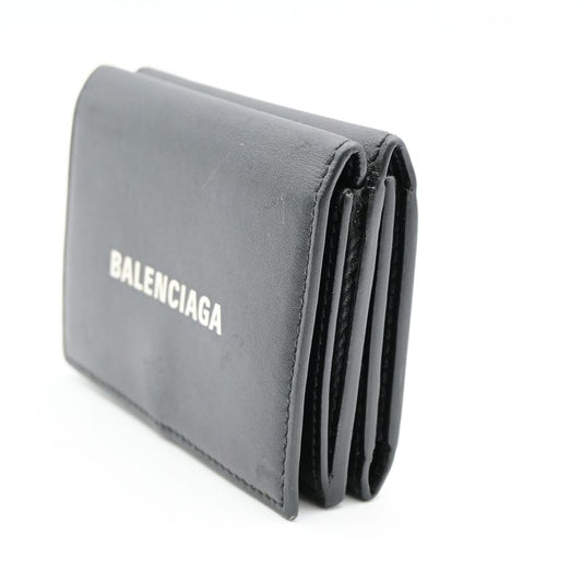 Balenciaga Trifold Wallet Mini Compact Wallet Black Leather 64bs001