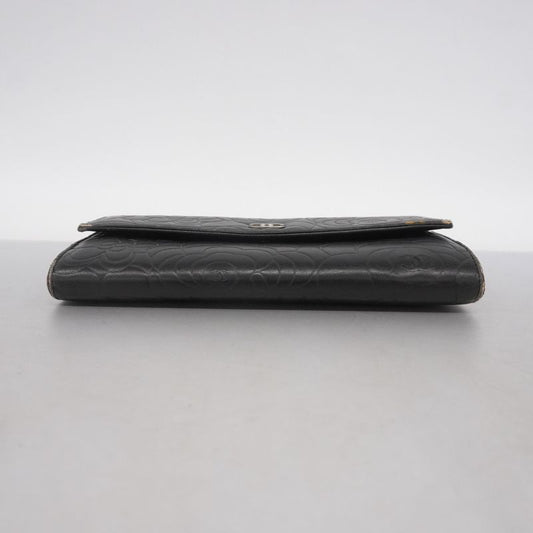 Chanel Long Wallet Camellia Lambskin Black Silver Hardware Women