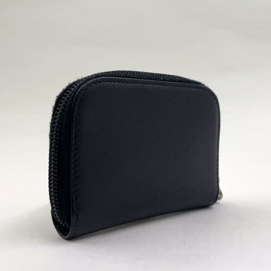 Prada Triangle Logo Coin Case Leather Black Wallet Silver