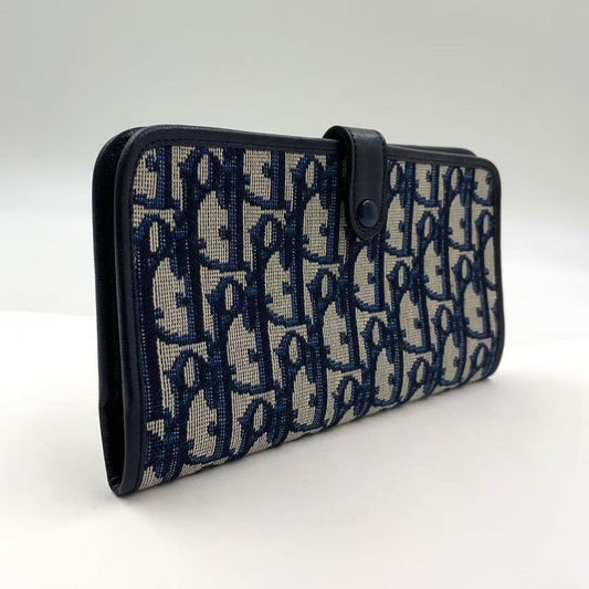 Christian Dior Trotter Fold Canvas Navy Wallet Gold