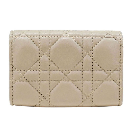 Dior Wallet Women's Brand Coin Case Cannage Leather Beige Small Compact Quilted