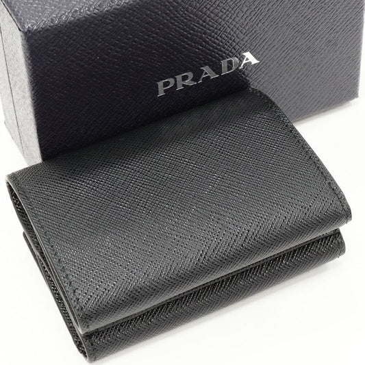 Prada Saffiano Triangle Compact Wallet Leather Black 2mh042_qhh_f0002