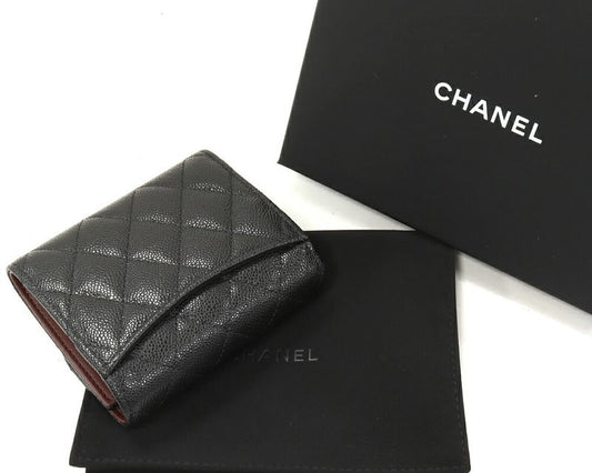 Chanel Trifold Wallet With Coin Purse Timeless Classic Compact Wallet In Caviar