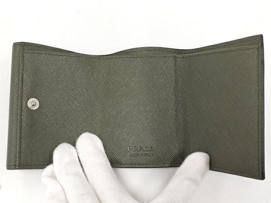 Prada Trifold Wallet With Triangular Logo Leather Green 2mh042