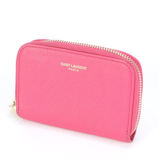 Saint Laurent Paris YSL Leather Coin Case Coin Purse Compact Wallet Round
