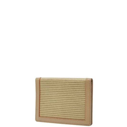 Saint Laurent YSL Logo Card Case Pass Case Beige Leather Canvas Women Saint