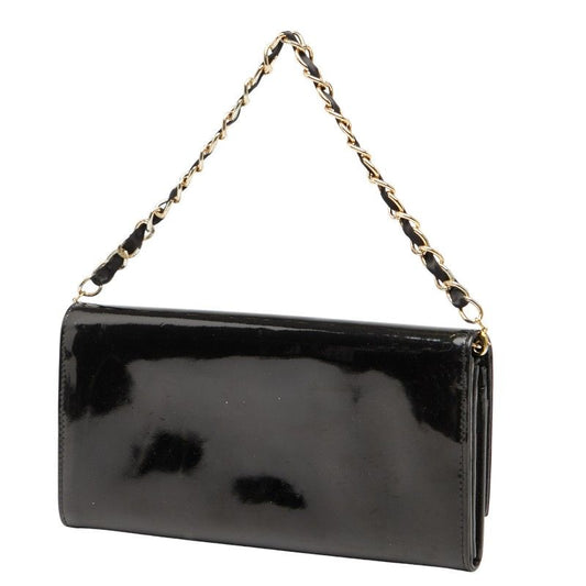 Dior Logo Chain Wallet Long Wallet Handbag Black Gold Patent Leather Women Dior