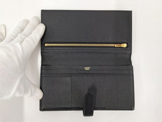 Hermes Bearn Souffle Folding Long Wallet Vaux Epson Leather Black Stamped D