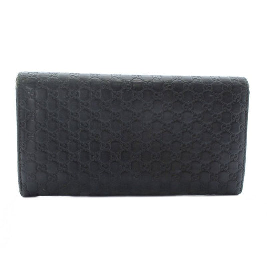 Gucci Long Wallet Fold Sima Leather Micro Guccissima Allover Logo Black