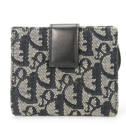 Christian Dior Bifold Wallet Trotter Canvas Black Silver Hardware W Hook