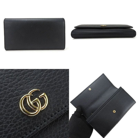 Gucci Fold Long Wallet 456116 GG Marmont Leather Black Wallet Small Everyday