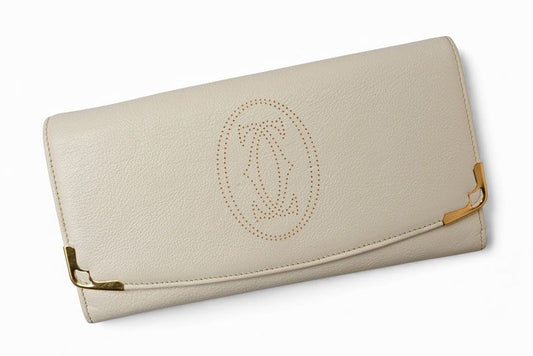 Cartier Wallet Cartier Long Wallet Marcello 2C Perforated Logo White