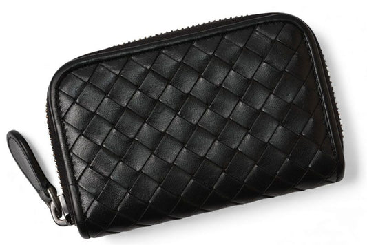 Bottega Veneta Coin Case Bottega Veneta Mini Wallet Intrecciato Leather Black