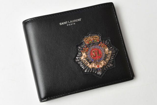 Saint Laurent Wallet YSL Saint Laurent Men's Foldable Wallet Star Leather Black