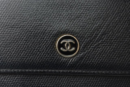 Chanel 4128 Bifold Wallet Genuine Leather Black Cles Deuce