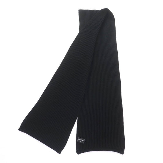 CHANEL Aa9552 100% Cashmere Coco Mark Logo Beads Sequins Scarf Black Made In