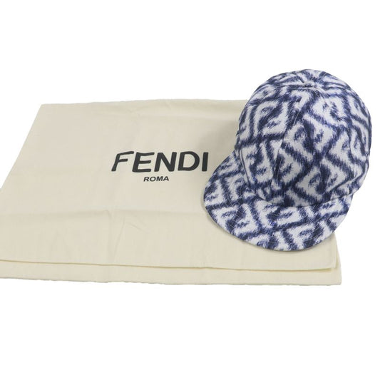 Fendi Fxq961 100% Silk Total Pattern Hat Baseball Cap Blue White 58 Storage