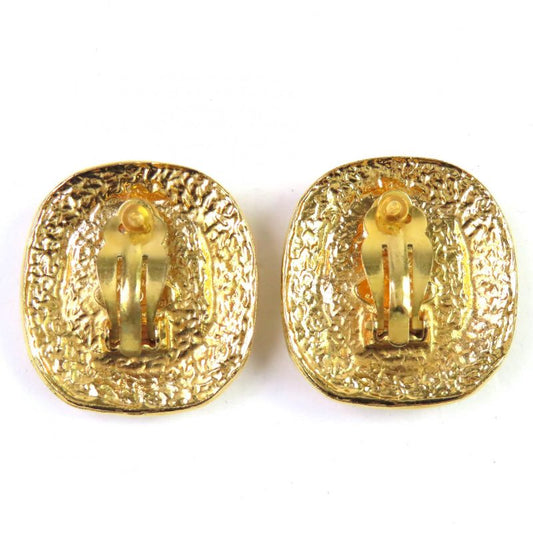 CHANEL Vintage 26 Gripore Colored Stone Logo Earrings For Both Ears Gold Red