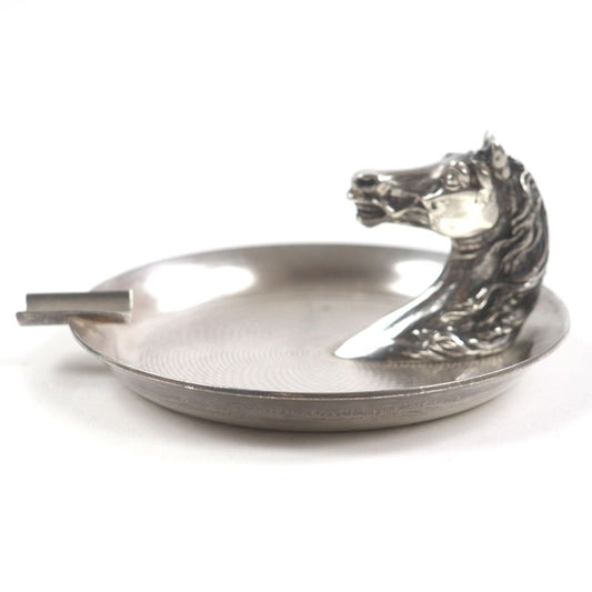 Hermes Vintage Cheval Horse Ashtray Metal Horse Motif Silver Men's