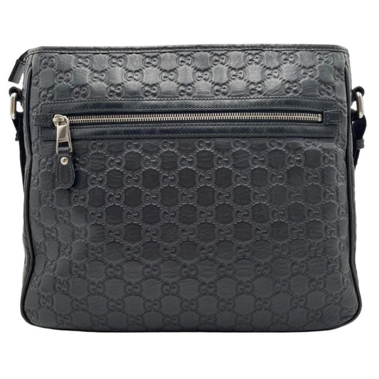 Gucci GG Messenger Bag Guccissima Rubber Shoulder Bag Black Leather
