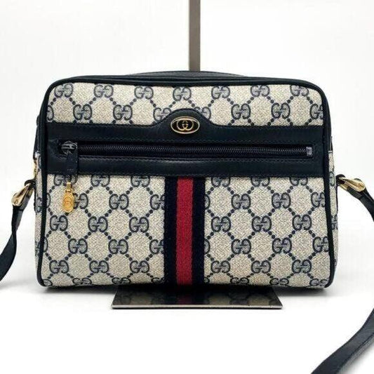Gucci GG Supreme Navy Monogram Crossbody Sherry Canvas Shoulder Bag