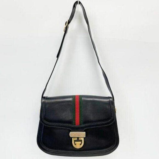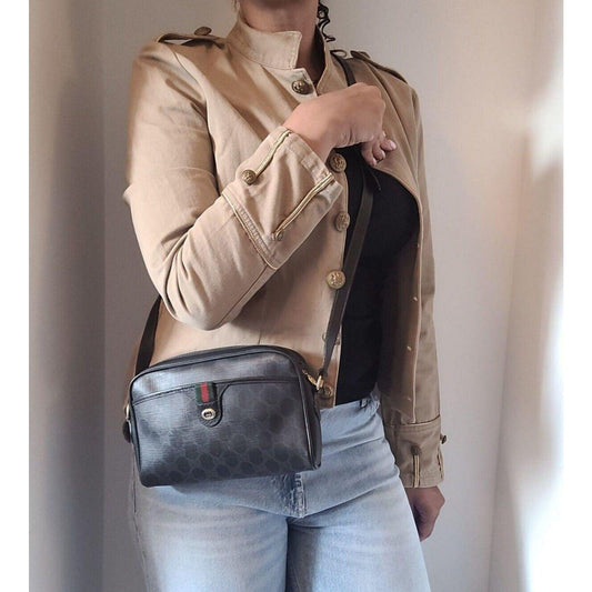 Gucci GG Vintage Ophidia Sherry Line Crossbody Bag Leather Black Purse