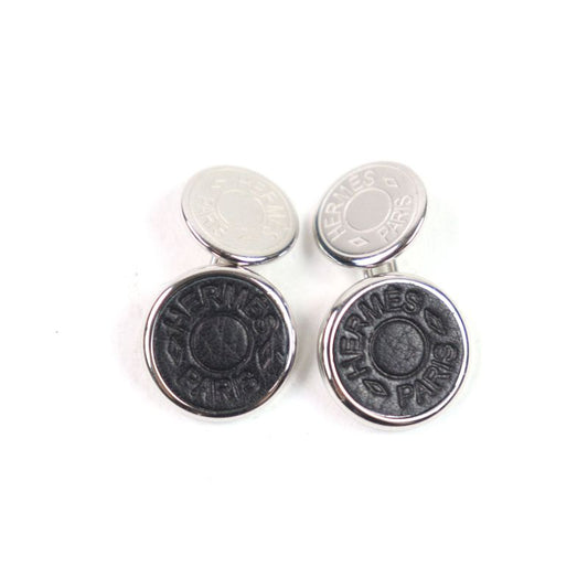 Hermes Sellier Design Logo Engraved Leather Use Round Shape Cufflinks Button