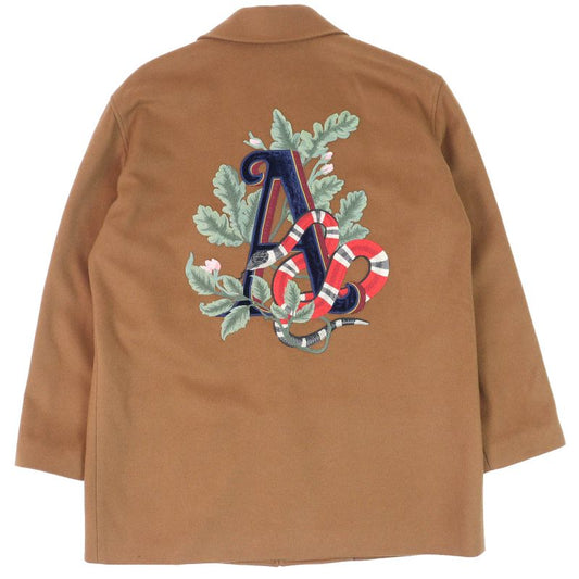 Gucci 728446 100% Cashmere Snake Embroidery Gold Button Single Breasted Coat