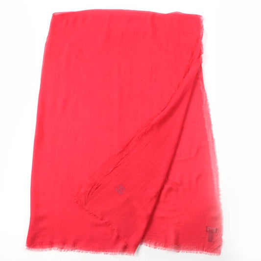 CHANEL Cashmere Blend Coco Mark Embroidered Fringed Large Scarf Shawl Red