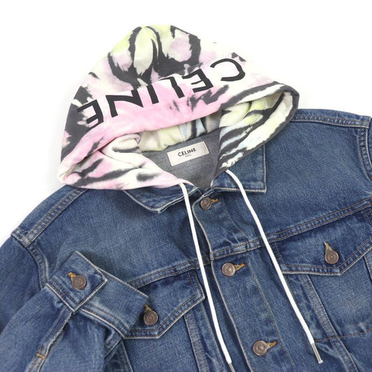 Celine 2q660930f Cotton Union Wash Hooded Denim Jacket Indigo Blue M Made In