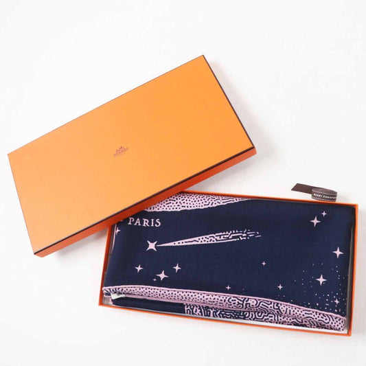 Hermes Carre Geant140 Clair De Lune Cles Cashmere Silk Marine View Rose Scarf