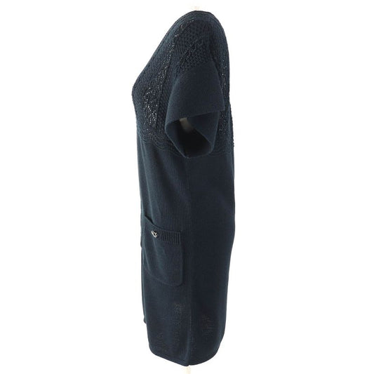 CHANEL P58547 100% Cotton Clear Coco Mark Button Openwork V-neck Knit Dress
