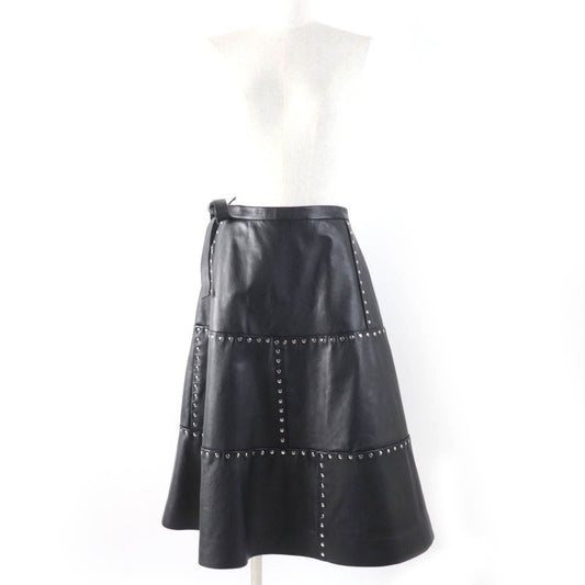Balenciaga 457902 Studded Long Length Leather Wrap Skirt Rolled Skirt Black 38