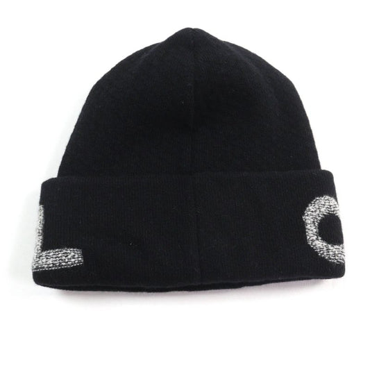 CHANEL Wool Cashmere Blend Logo Design Knit Hat Knit Cap Hat Black Made In