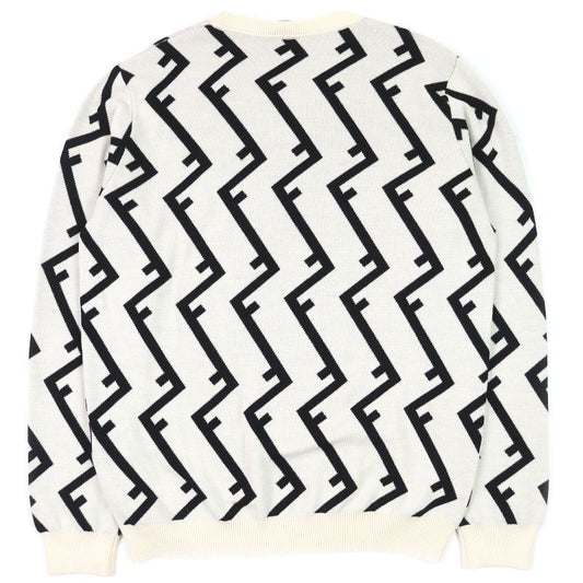 Fendi Fzz489 100% Wool FF Motif Total Pattern Crew Neck Long Sleeves Knit