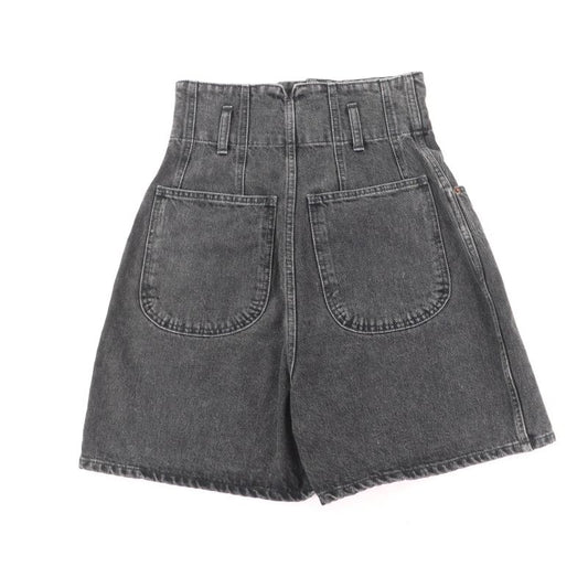 Celine 100% Cotton High Waist Denim Shorts With Logo Button Black 24 Made In