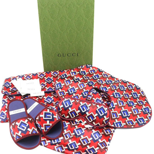 Gucci Geometric G Print Travel Set 100% Silk Eye Mask Air Pillow Slippers