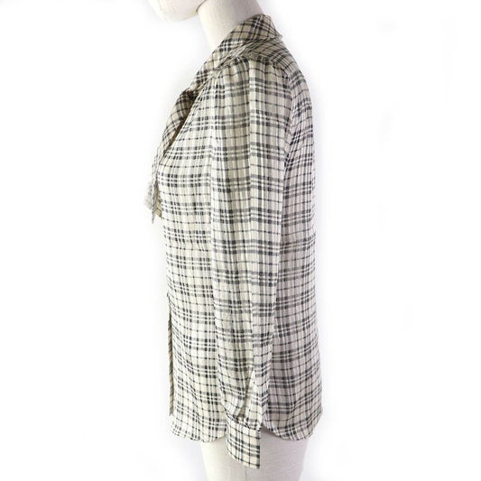 Saint Laurent Paris 2021 660885 Silk Gold Lame Checked Bow Tie Blouse Long
