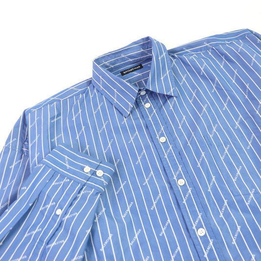 Balenciaga 2019 595214 Cotton Stripe Logo Allover Embroidery Oversized Long