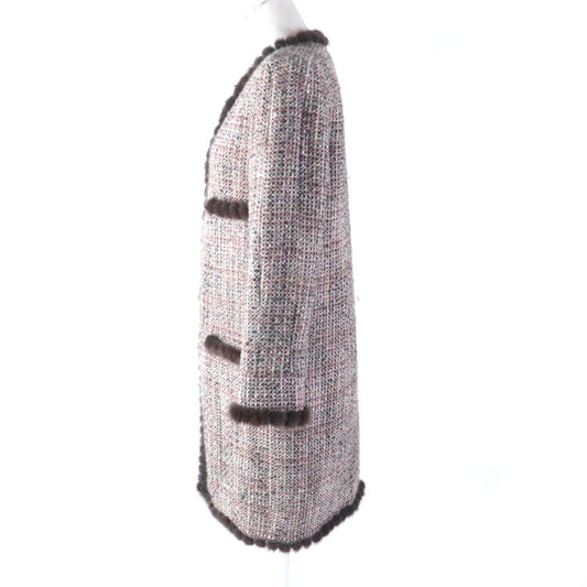 CHANEL Vintage 03A P21803 Mohair Blend 100% Silk Lining Mink Trimming Collarless