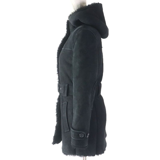 Prada 2017 Mouton Coat With Belt And Hood Black 38 Genuine