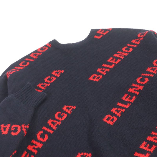 Balenciaga 2018 555279 Wool Jacquard Logo Long Sleeve Knit Sweater Navy XS