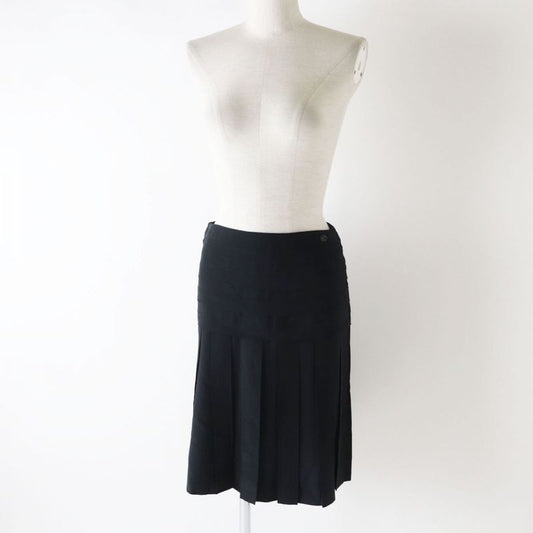 Hermes French CHANEL 06P P28626 Ladies 100% Silk Pleated Skirt With Coco