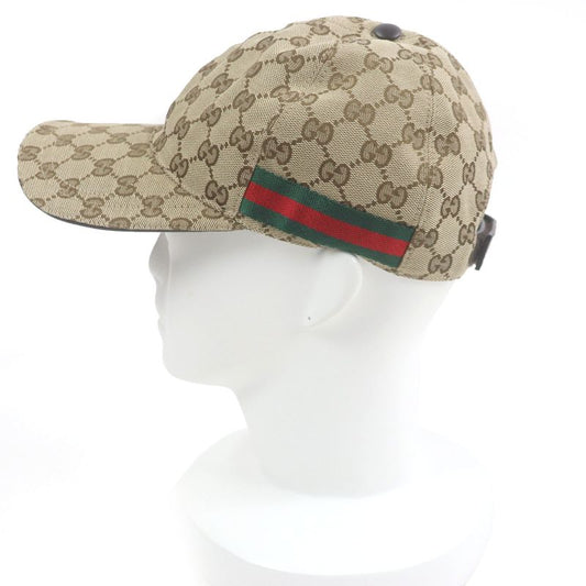 Gucci 200035 GG Canvas Webline Baseball Cap Hat Beige Xs/56cm (22.05in) Made In