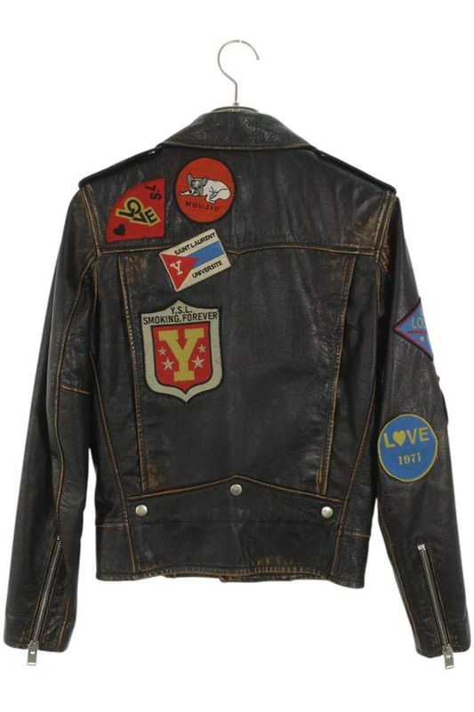 Saint Laurent Paris 483224 Yc1ep Double Rider Scuff Zar Jacket With Patch Men's