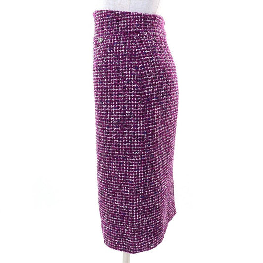 CHANEL 09P P35515 Coco Mark Plate Cotton Tweed Tight Skirt Purple 44 Made In